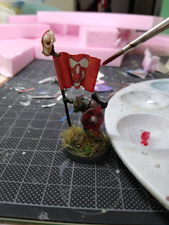 If you imagine a view of a tabletop wargame, what do you see? I bet, that the first two things, what you think of, are the painted miniatures, and the terrain. Obviously, these are the most important. But what is the third thing? Thats a harder question... At first, but after thinking a while my answer is pretty clear: banners!